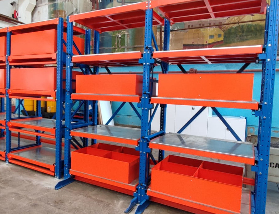 Отправьте заявку, чтобы узнать цену на изготовление стеллажей с выдвижными лотками на заказ по индивидуальным размерам с доставкой с завода производителя по городам Кемеровской области и России.